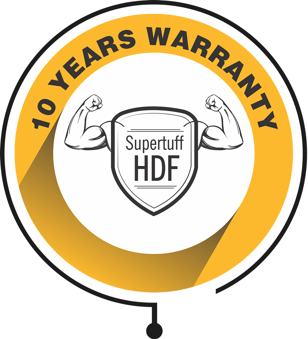 • Well, Supertuff HDF (High Density Fiber) seems to be the one-stop answer to all the above. It outperforms ply and MDF by a significant margin on all counts. Besides, the extra cost is more than compensated for by the 10-year guarantee offered by Spacewood on all its HDF products.
